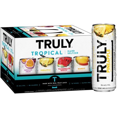 Only 100 calories no added sugar and gluten free. Juicier than an early-2000s tracksuit. Hard Seltzer 45 ABV.